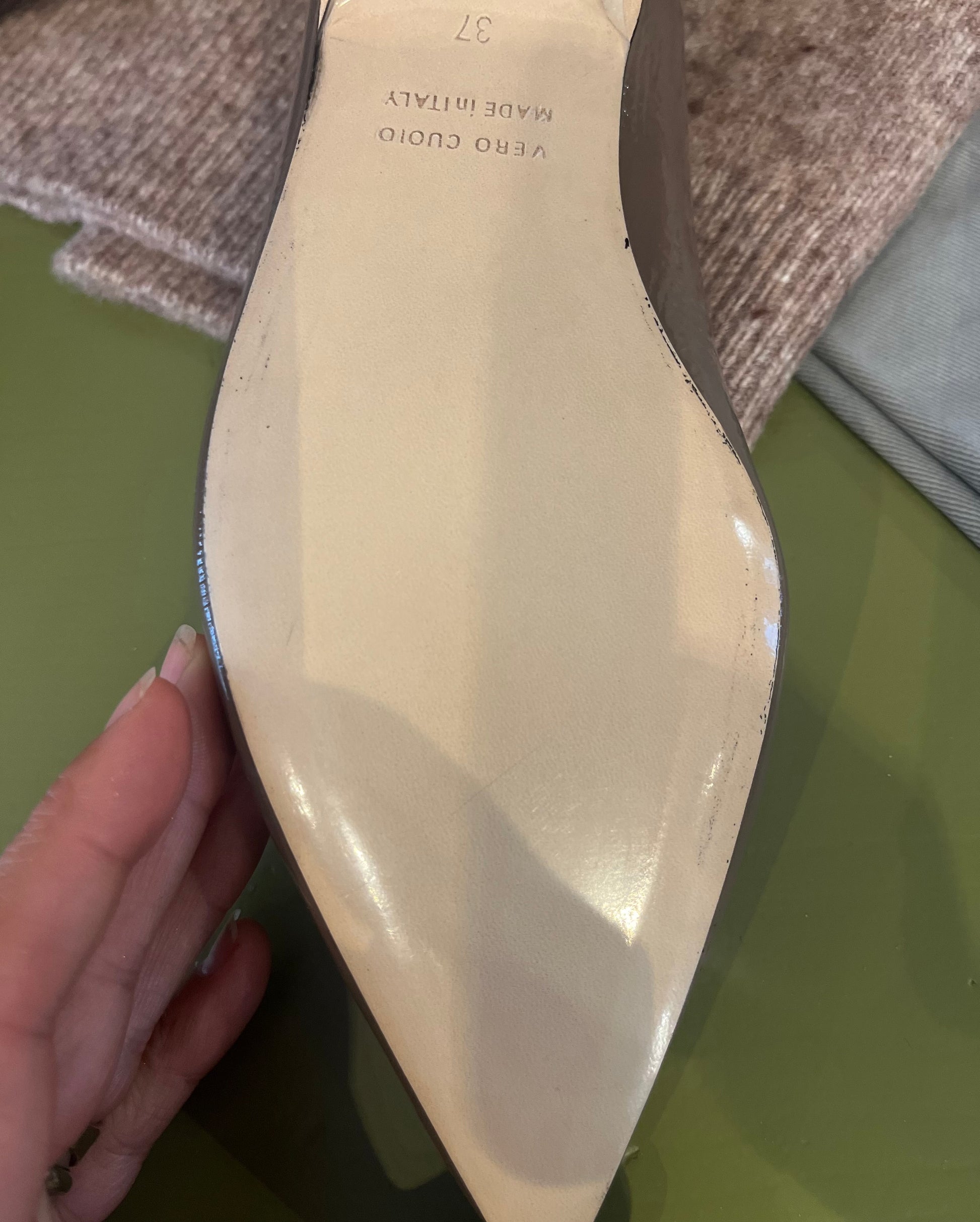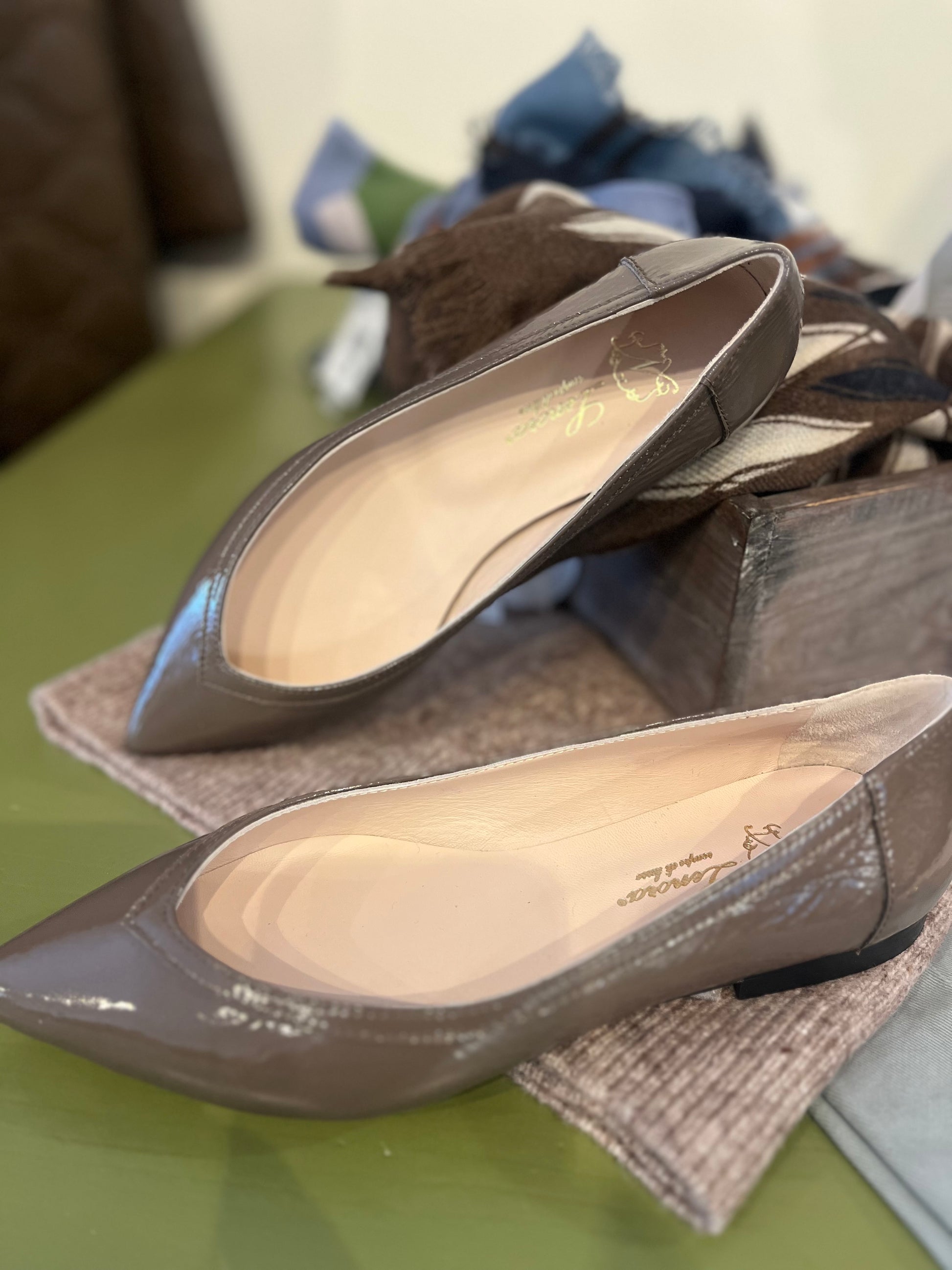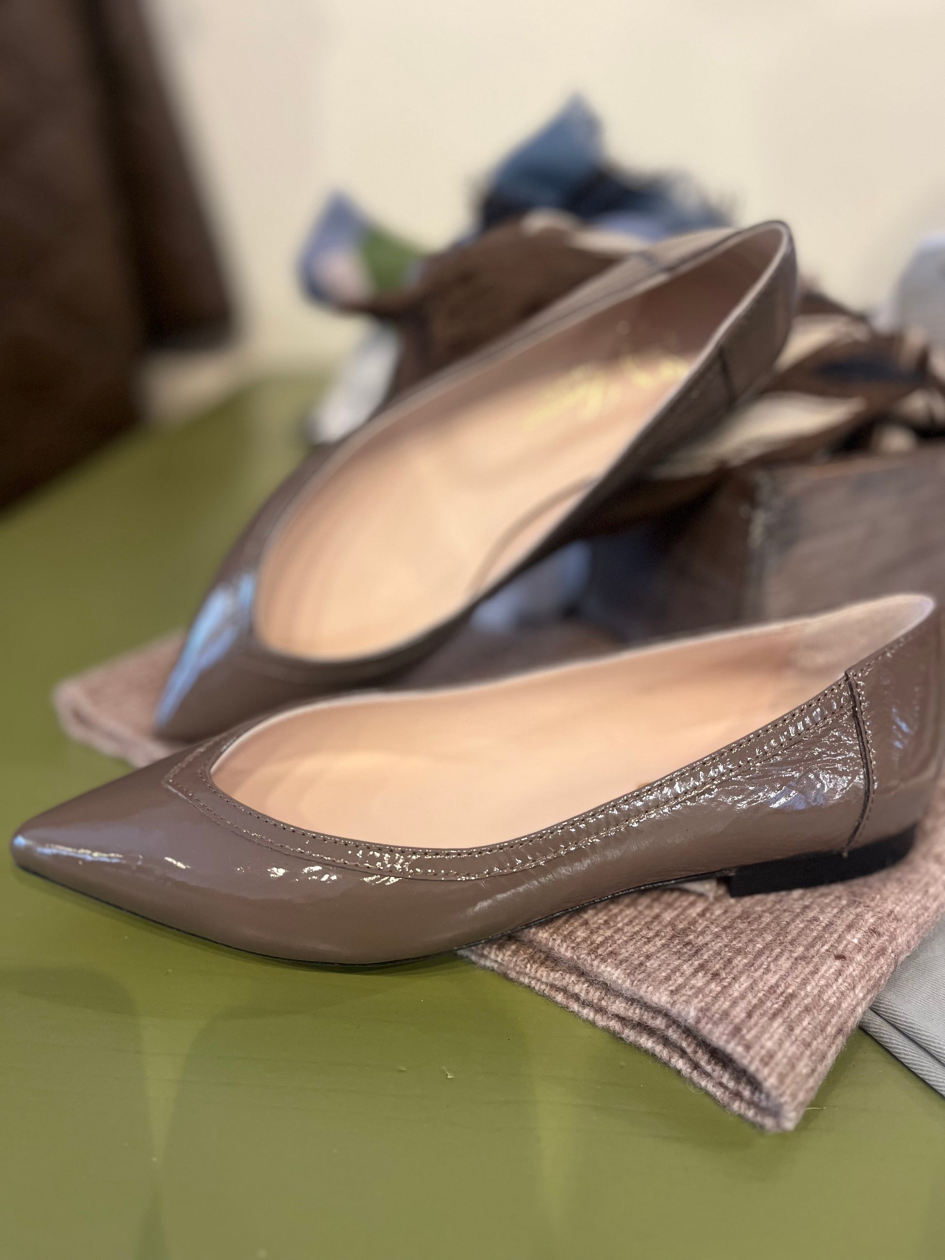 Scarpe in vitello verniciato color tortora