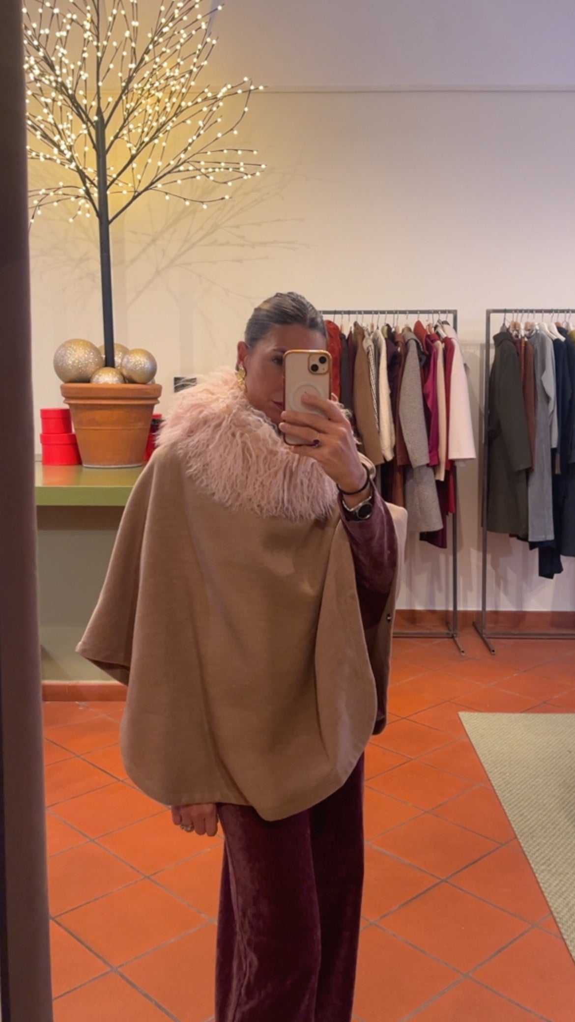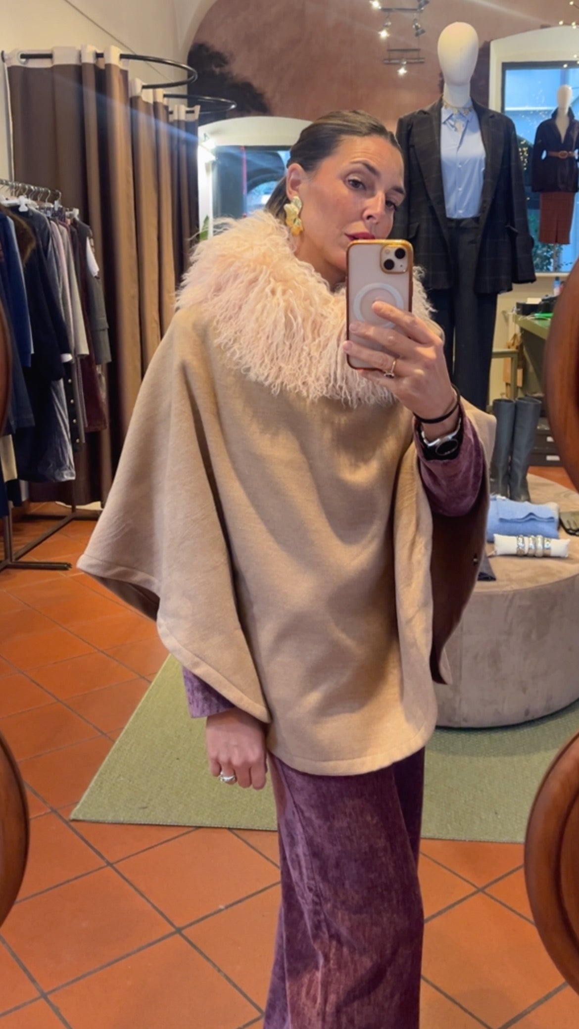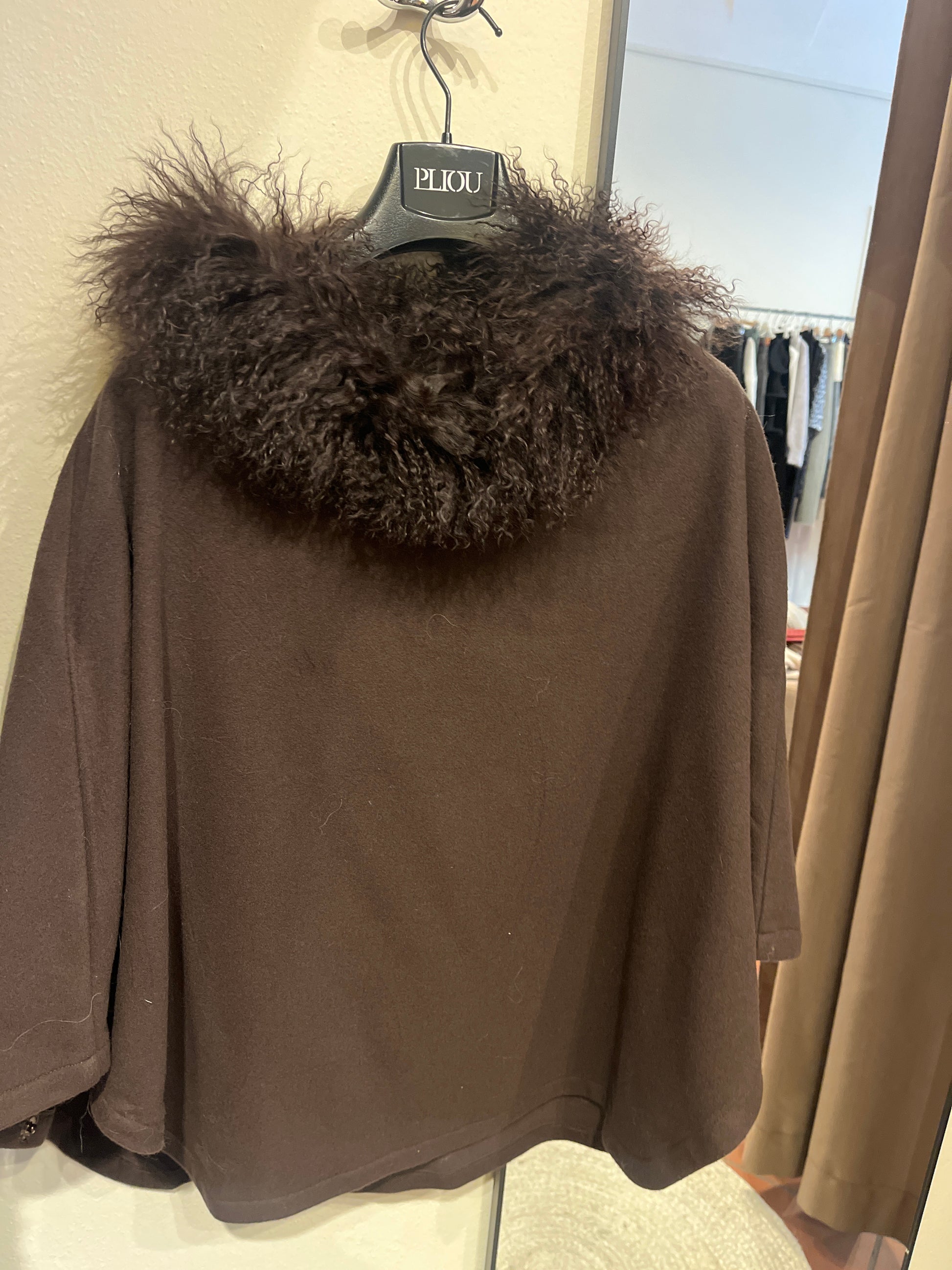 Cappa in panno di lana e collo in pelliccia